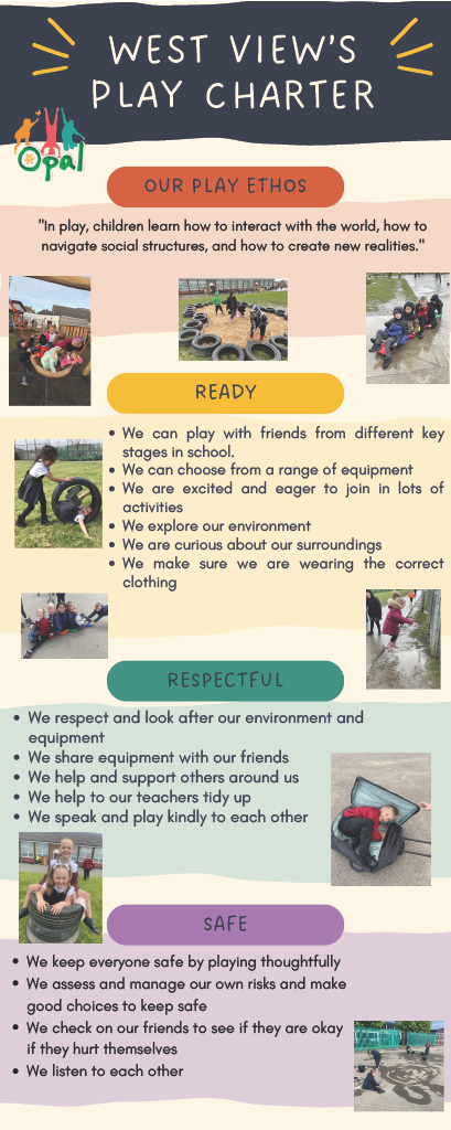 Our school vision, at West View Primary School, is that everyone flourishes throughout their time with us, enjoying life in all its fullness and that applies to both academic learning and learning through play. We believe a positive play experience enhances a child’s emotional, mental and physical wellbeing.