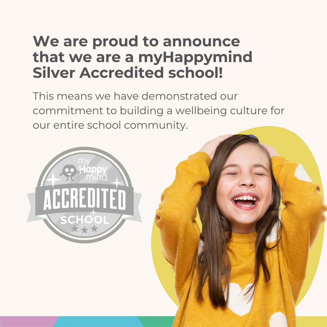We are proud to be a part of the myHappymind Family! As a whole school programme grounded in science and dedicated to building positive mental wellbeing, myHappymind helps children to understand how their brains work and creates a culture that helps to build children’s resilience, confidence, and self-esteem. myHappymind also teaches the children how to self-regulate and manage their emotions in stressful times, allowing them to be their very best selves! Learn more here: https://myhappymind.org/